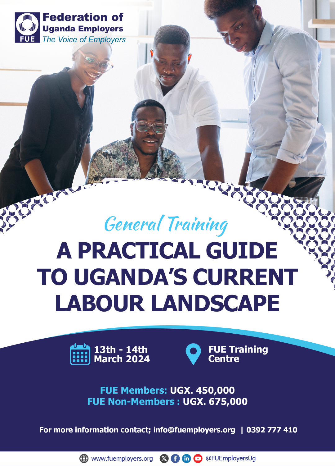 To request a customised training suited to your organisation needs, kindly reach out to Yusuf Nsubuga, the FUE Training Manager, yusuf.nsubuga@fuemployers.org
